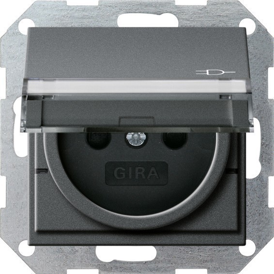 Розетка Gira SYSTEM 55, скрытый монтаж, с заземлением, с крышкой, со шторками, антрацит, 277128